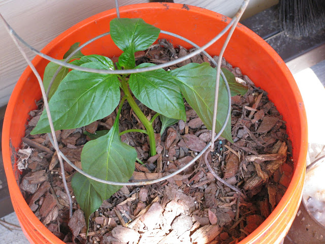 I began planting my vegetable garden on Tuesday May 5th. I bought a big bag of Pine Bark Mini Nuggets Mulch by Garick and a small bag of Vigoro Fertilizer. The soil, i'm resusing from what was left from last year's garden. I emptied out all the buckets. I first layed down some mulch in each and cover that with some soil, half way of the bucket. I then took the fertilizer and mixed it with the soil that was left over(make sure you read the fertilizer instructions bc you dont want to over fertilize and kill the plant). I placed the vegetable plants in the buckets and began filling the rest of it with the soil mixed with fertilizer until it left me about 2 to 4 inches to the top of the bucket. I covered the soil with about 2 inches of the mulch so it can keep the moisture and hot tempature in the buckets.