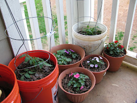 Here are a few snaps of what my patio is looking like. Along with my Vegetable Garden, i have a Rose garden. Also i have some Hibiscus plants which i recently just pruned and replanted a few of the branches that were cut off. When i got my vegetables, i also brought some .99cent flowers from Home Depot to add some diversity and color to the patio. The name of these flowers slips my mind everytime so if anyone knows what they are called please let me know by leaving a comment. These plants are very common and well known. My parents would plant these around the house and they would grow very nicely. I took these pictures on May 7th.