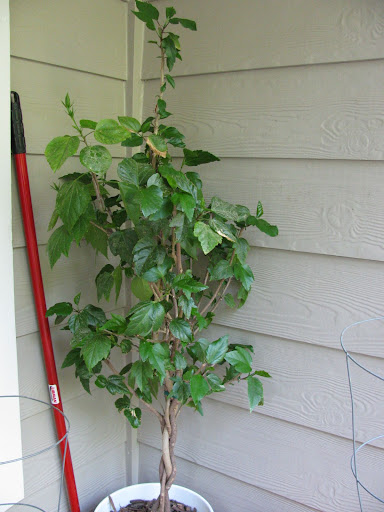 ONE HIBISCUS, the is 4 plants twisted together as one. this is the one i just pruned.